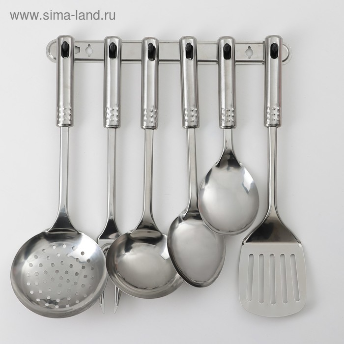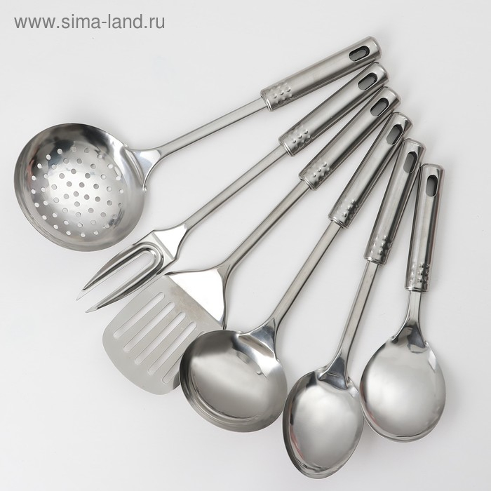 Набор кухонных принадлежностей «Стандарт», 6 предметов, на подвесе, цвет серебряный