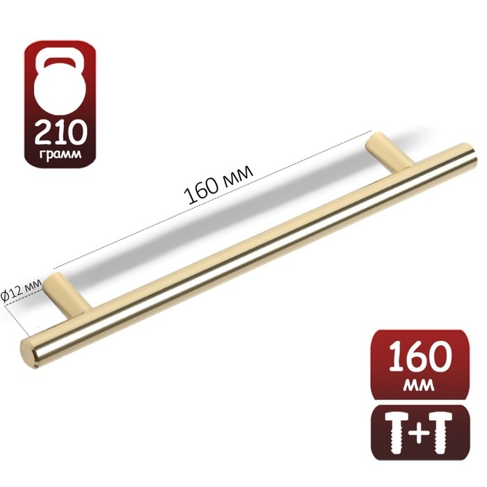 Ручка рейлинг ТУНДРА BISTRO, d=12 мм, м/о 160 мм, цвет золото