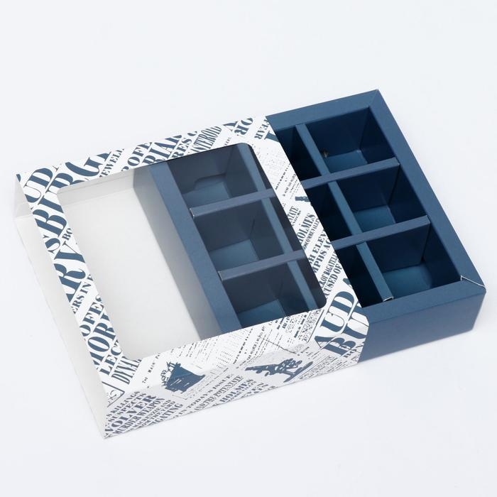 Коробка под 9 конфет с обечайкой " Пресса " с окном 14,5 х 14,5 х 3,5 см