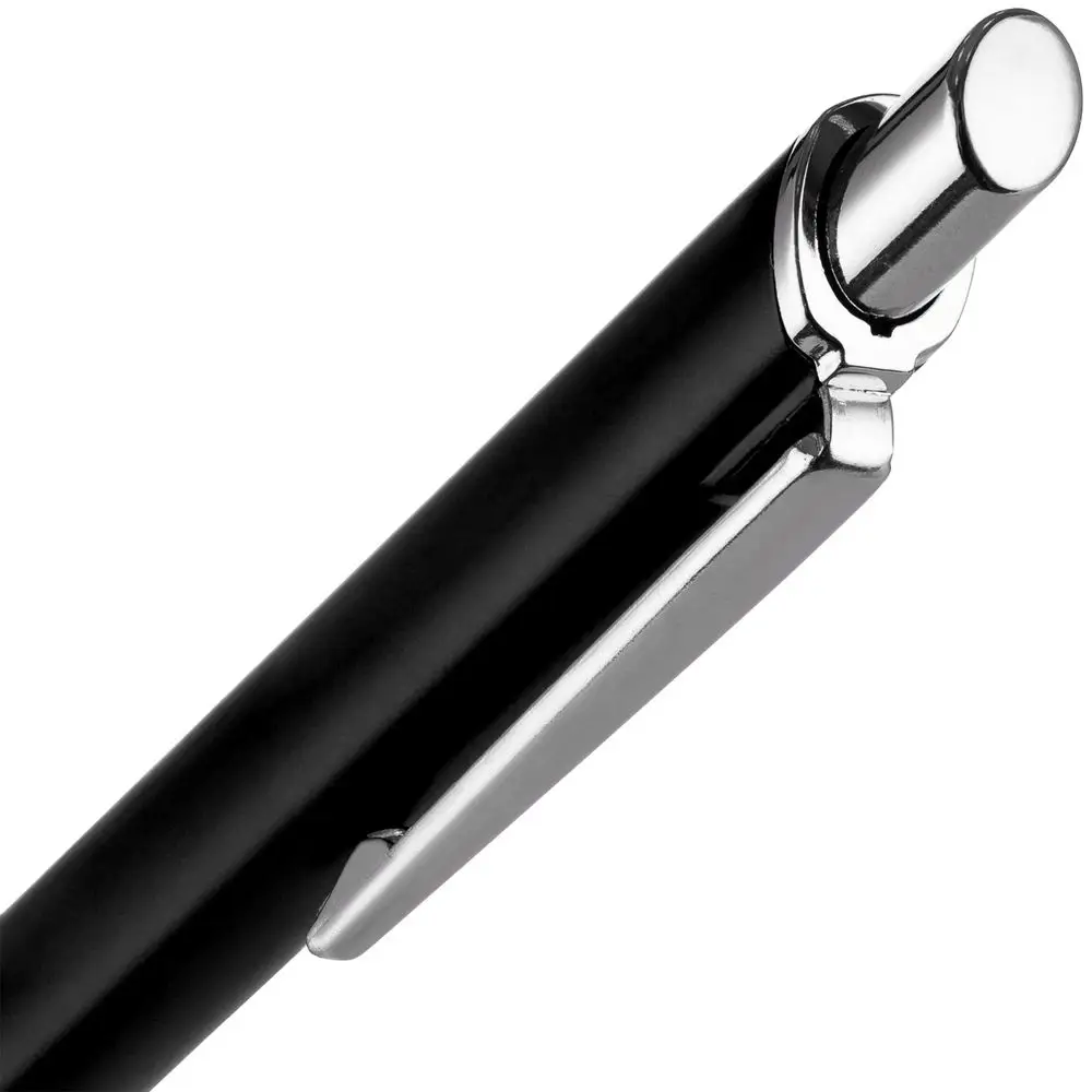Металлическая ручка с матовым корпусом и хромированными деталями.