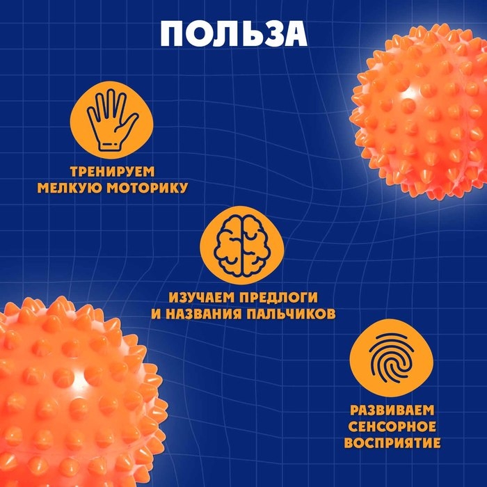 С помощью колючего мячика можно выполнить микромассаж рук, ступней, голеней и других частей тела. Игрушка полезна для детей и взрослых.