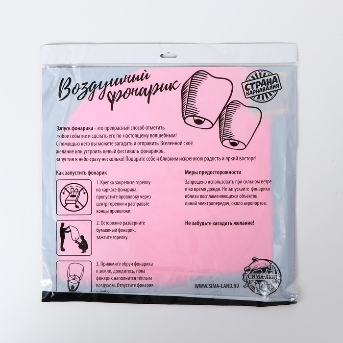 Объёмная конструкция из специальной экологически чистой бумаги действует по принципу воздушного шара. Надёжно закреплённая в нижней части бумажного купола горелка разогревает воздух внутри фонарика, поднимает его вверх и эффектно подсвечивает изнутри, создавая таинственный ореол.