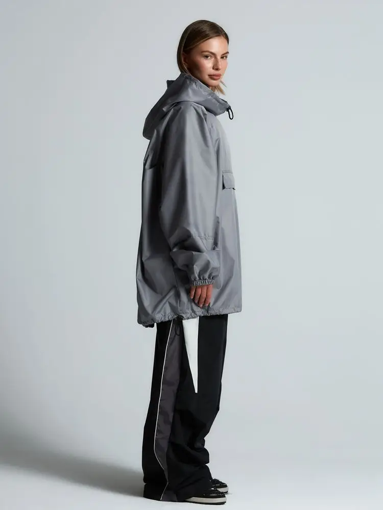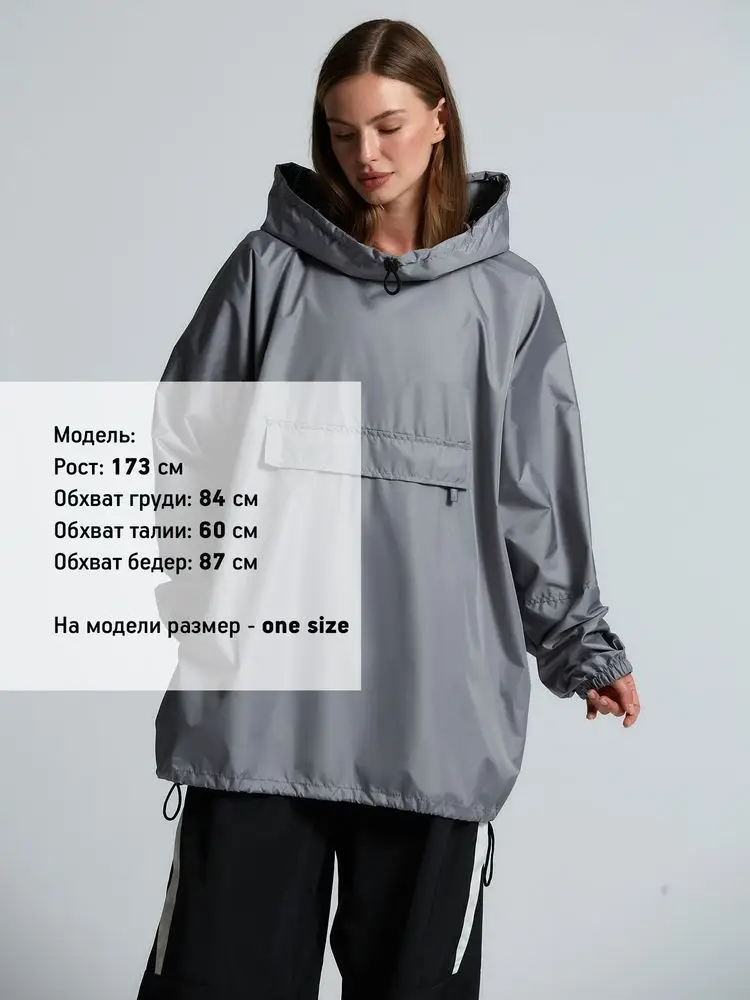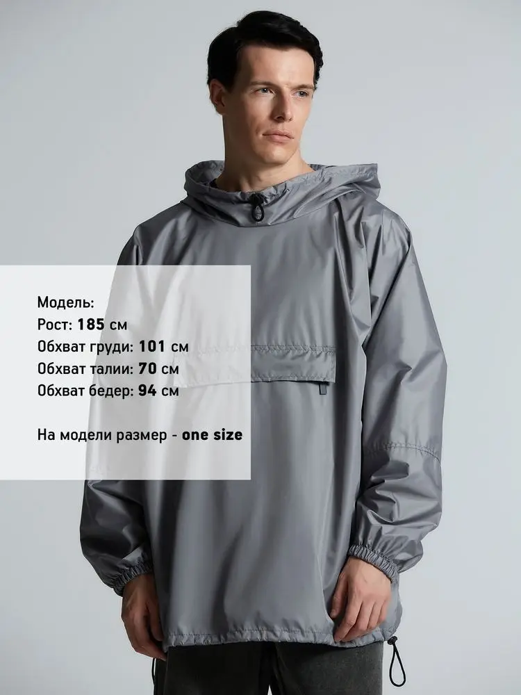 Дождевик-анорак Hard Work, укороченный, серый, единый размер