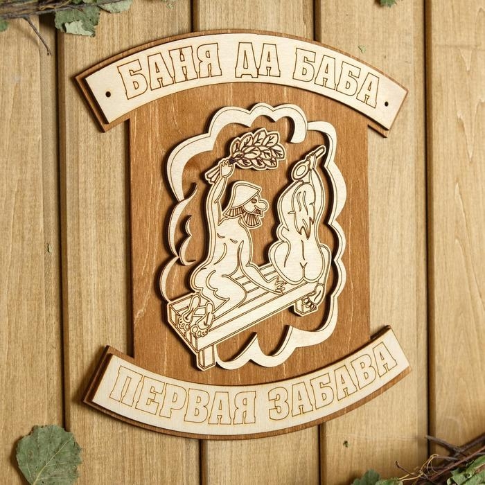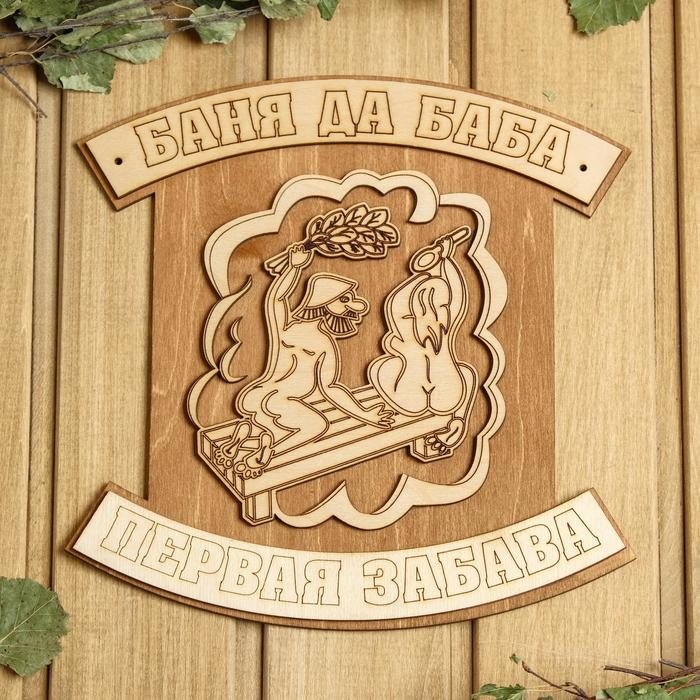 Табличка для бани 23.5×23.5 см "Баня да баба - первая забава"