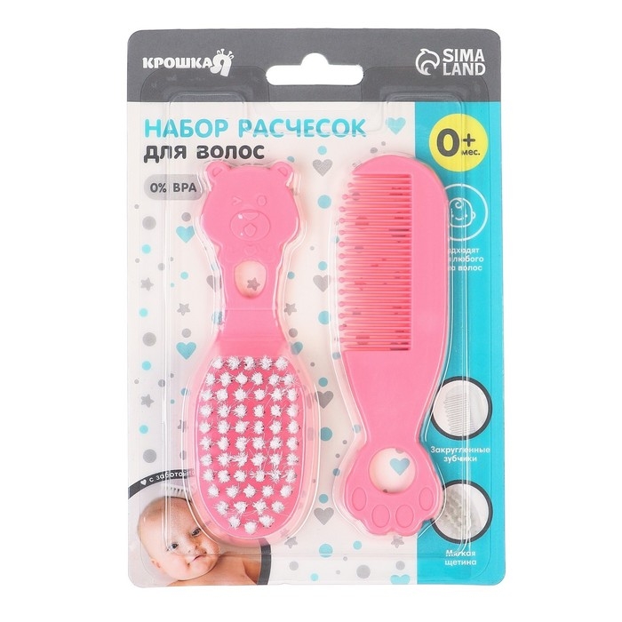 Расческа-щетка с мягкой щетиной и удобная расческа с закругленными зубчиками предназначены для малышей с первых дней жизни.