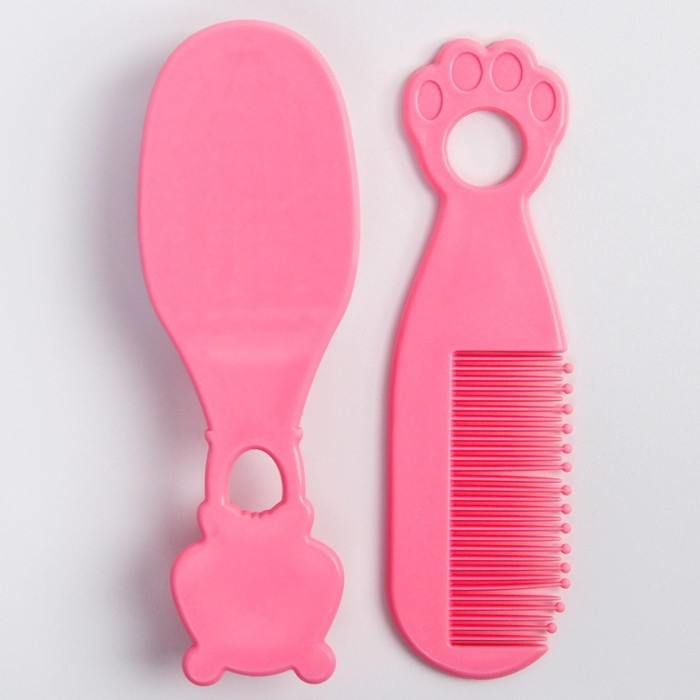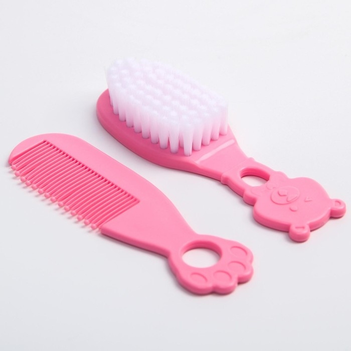 Набор для ухода за волосами: расческа и щетка, «Мишка», цвет розовый