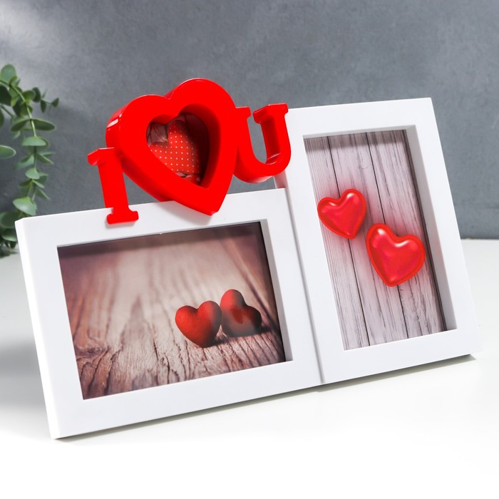 Фоторамка пластик на 2 фото 10х15 см "Я люблю тебя" белая 20х30,5 см