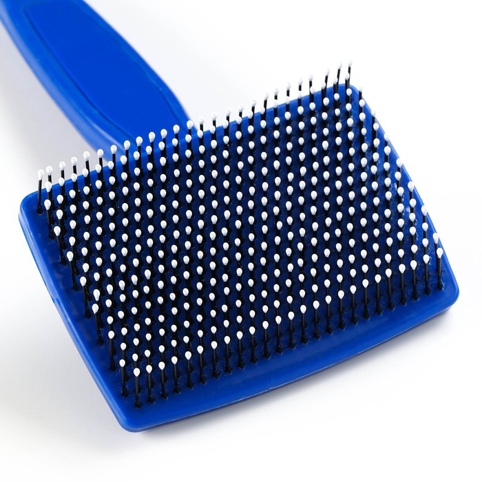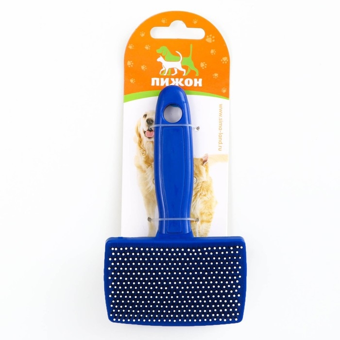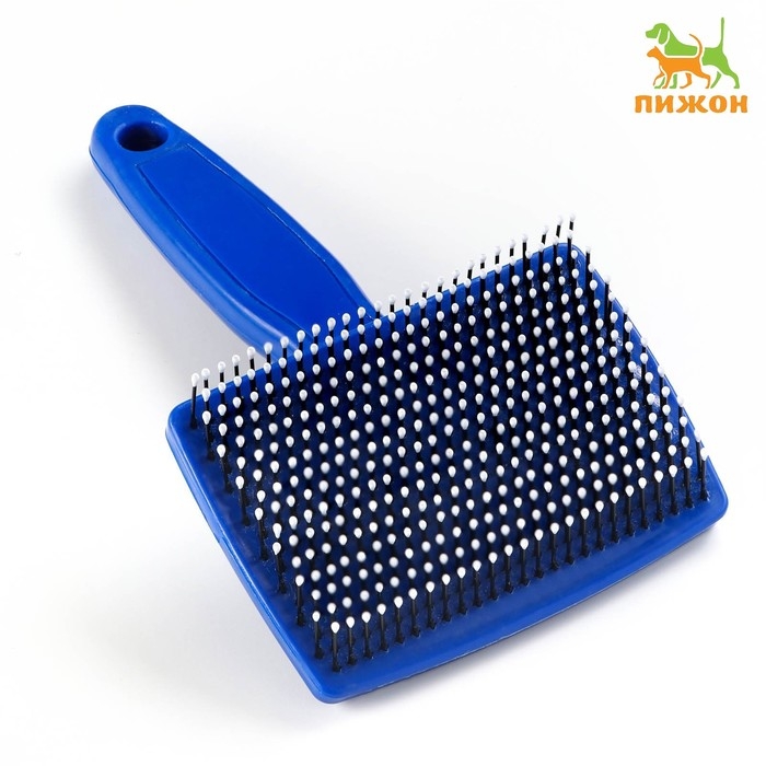 Пуходерка пластиковая мягкая с закругленными зубьями, средняя, 9 х 15,5 см, синяя