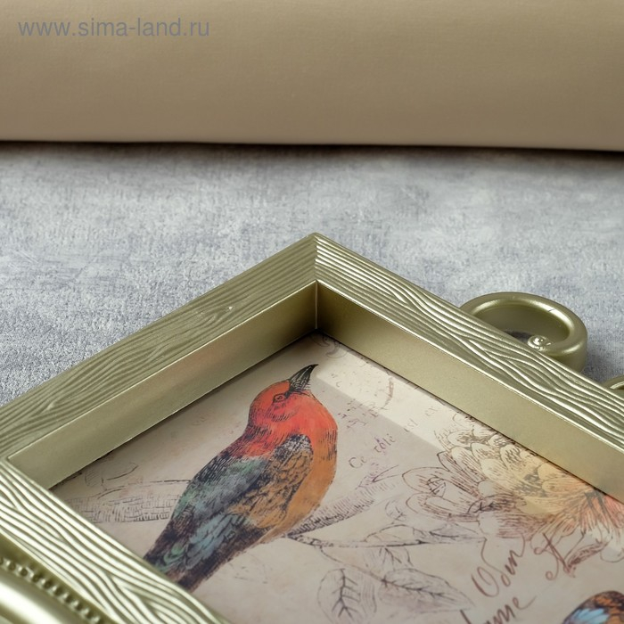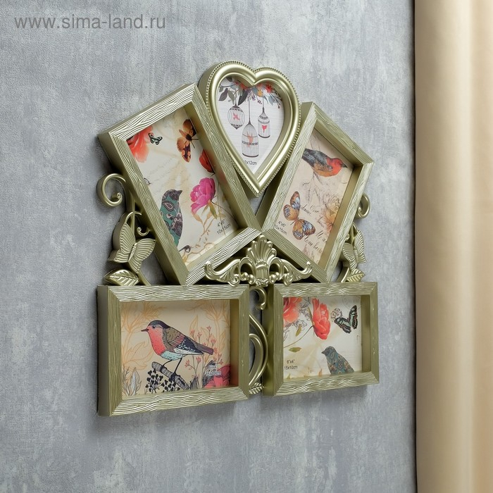 Фоторамка пластик на 5 фото 10х15, 12х12 см "Бабочки и вензель" золото 34,5х37 см