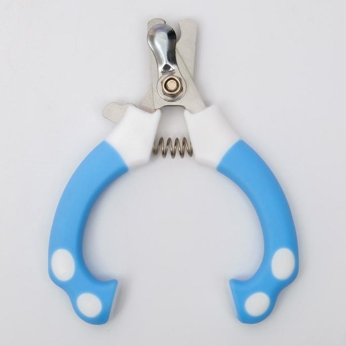 Ножницы-когтерезы изогнутые с прорезиненными ручками, отверстие 6 мм, тёмно-синие