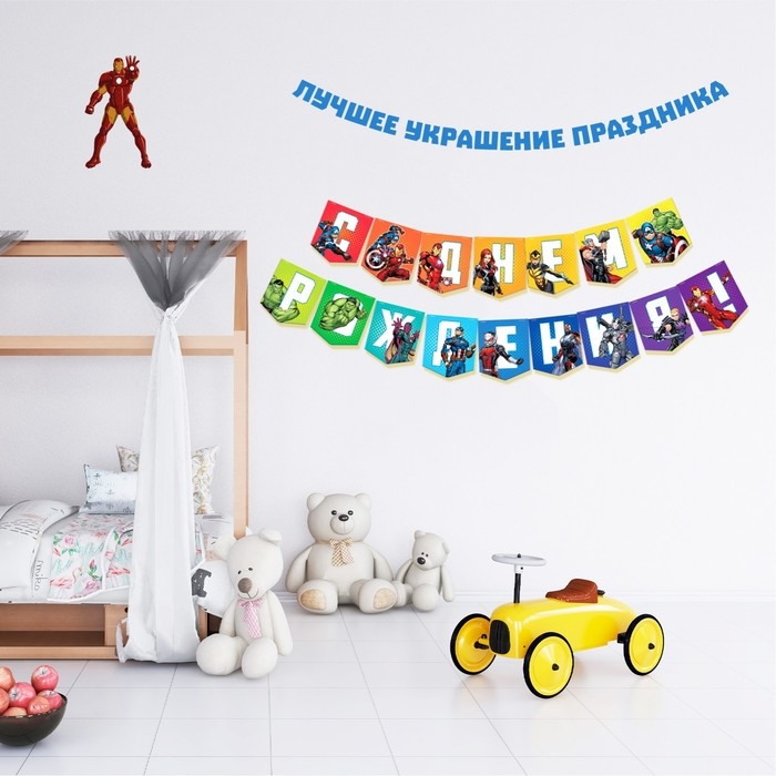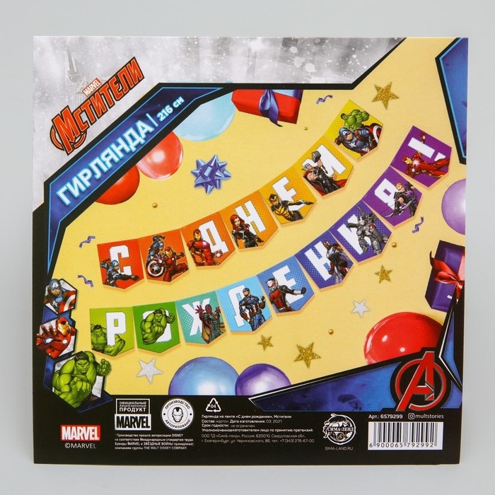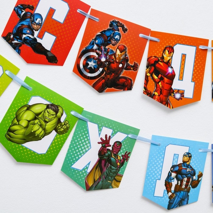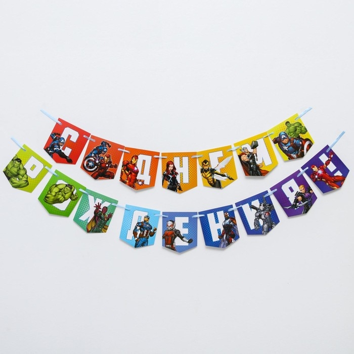 Гирлянда на ленте "С Днем Рождения", длина 216 см, Мстители