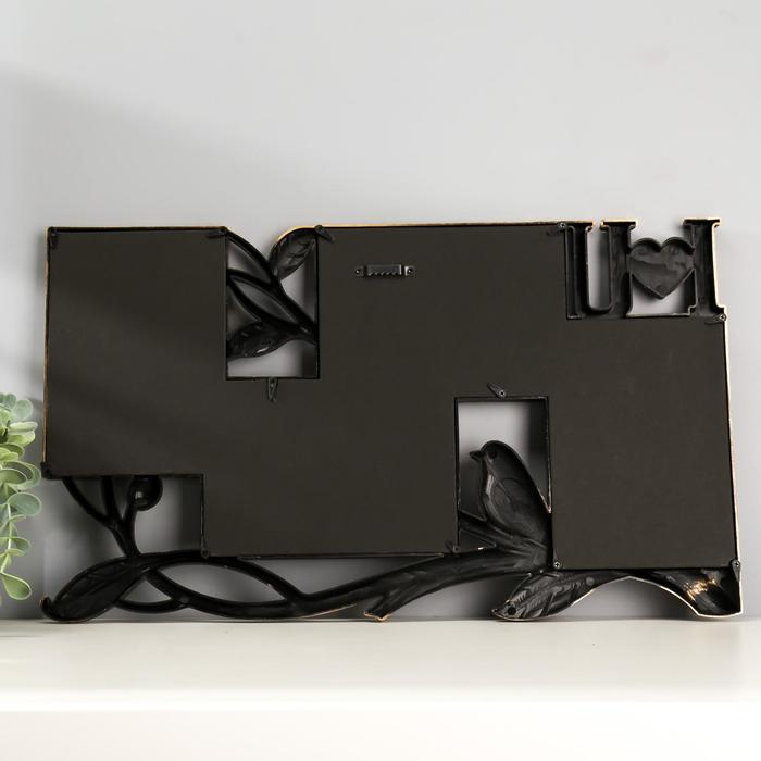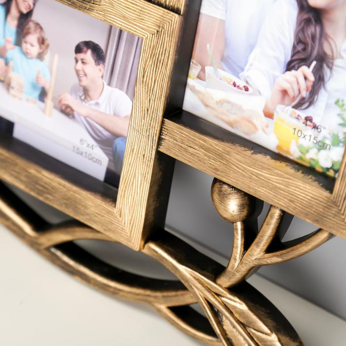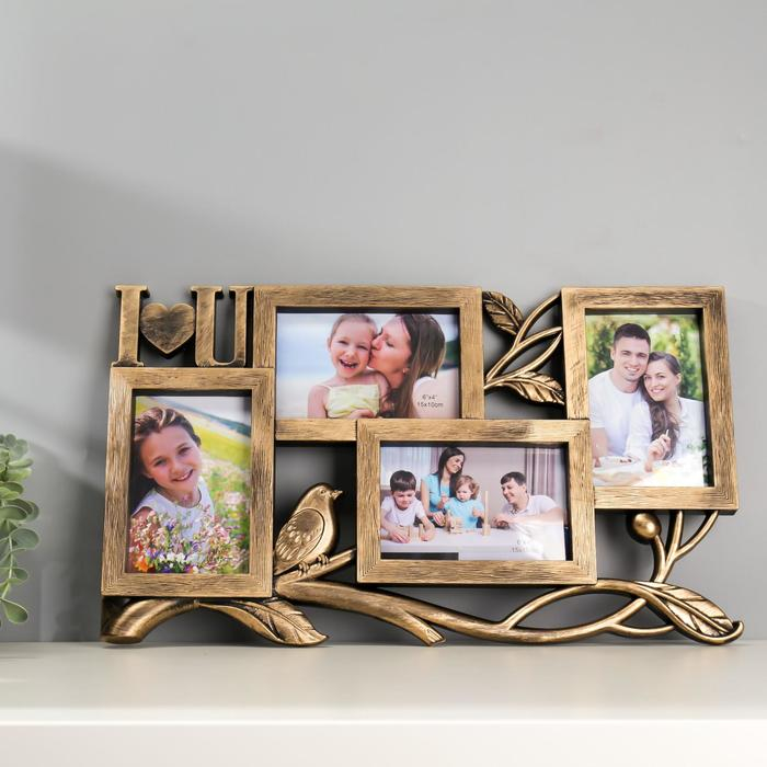 Фоторамка пластик на 4 фото 10х15 см "Птица на ветке" тёмное золото 28х47 см