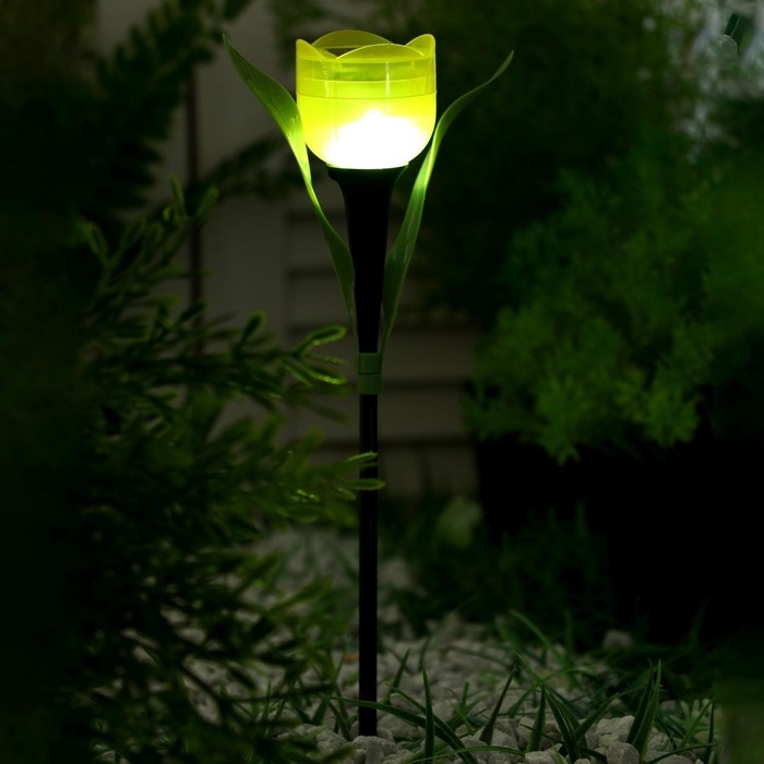 Садовый светильник на солнечной батарее «Тюльпан жёлтый», 4.5 × 29 × 4.5 см, 1 LED, свечение белое