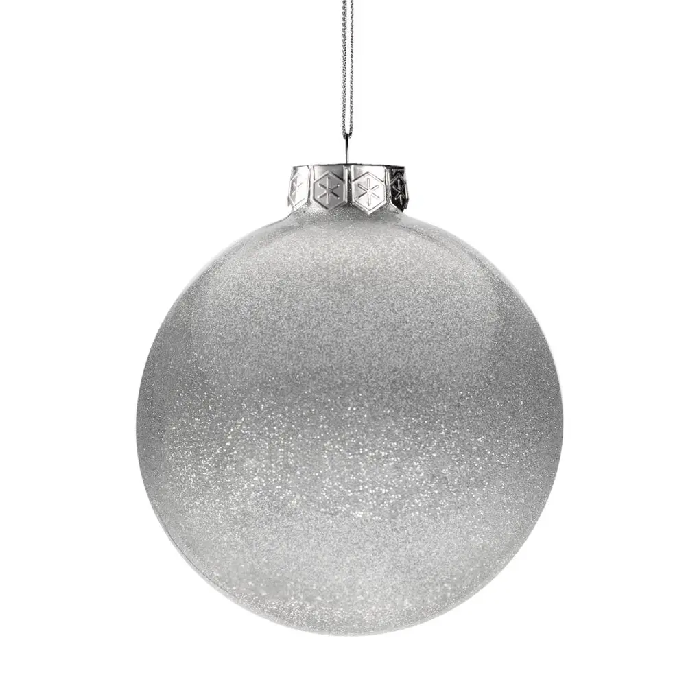 Елочный шар Finery Shine, 10 см, глянцевый серебристый с глиттером
