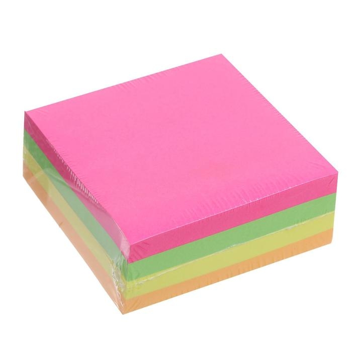 Блок с липким краем 76 мм х 76 мм, 320 листов, флуоресцентный, 4 цвета