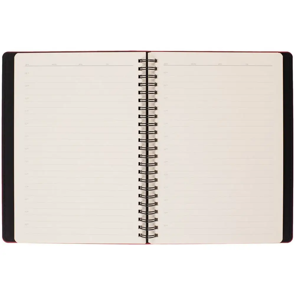 Ежедневник с блоком на пружине в твердой обложке, выполнен из материалов Nubuk Touch, красный PP и Soft Touch, черный AA.
