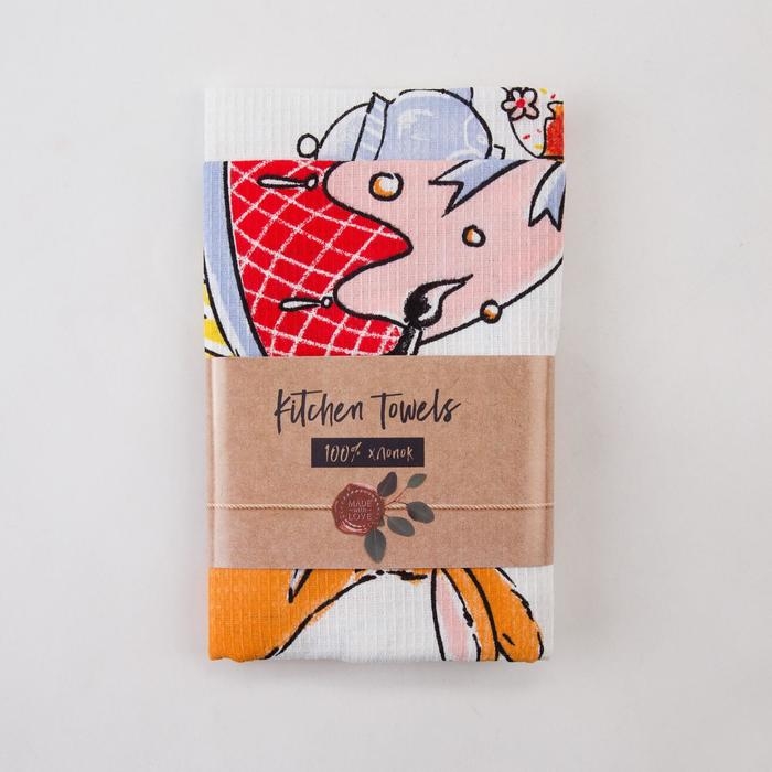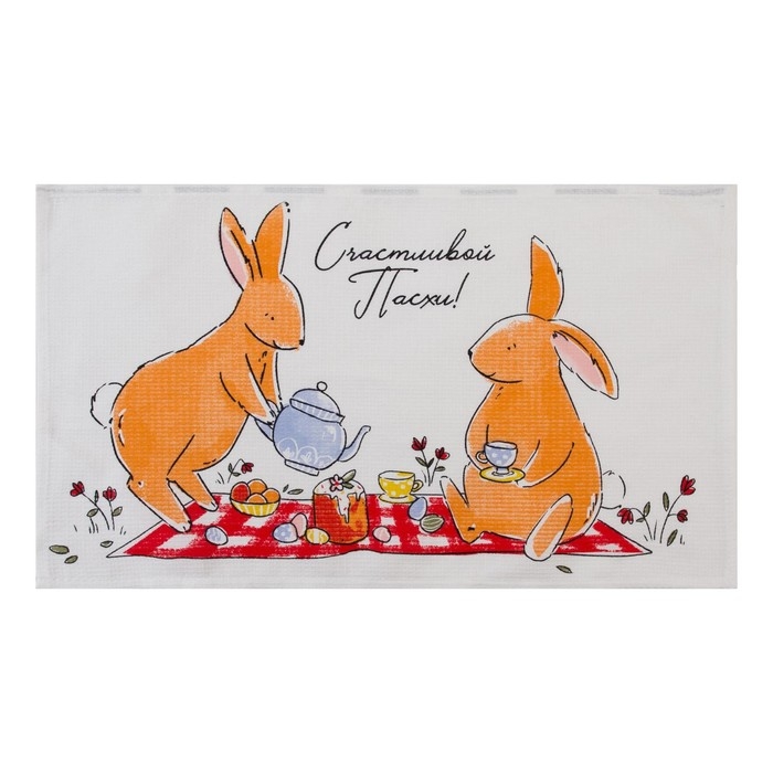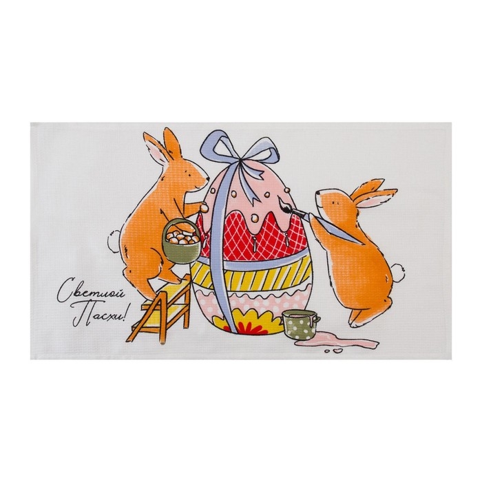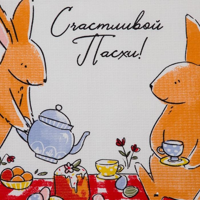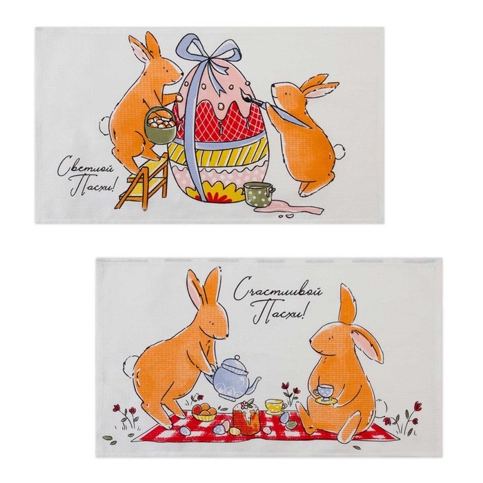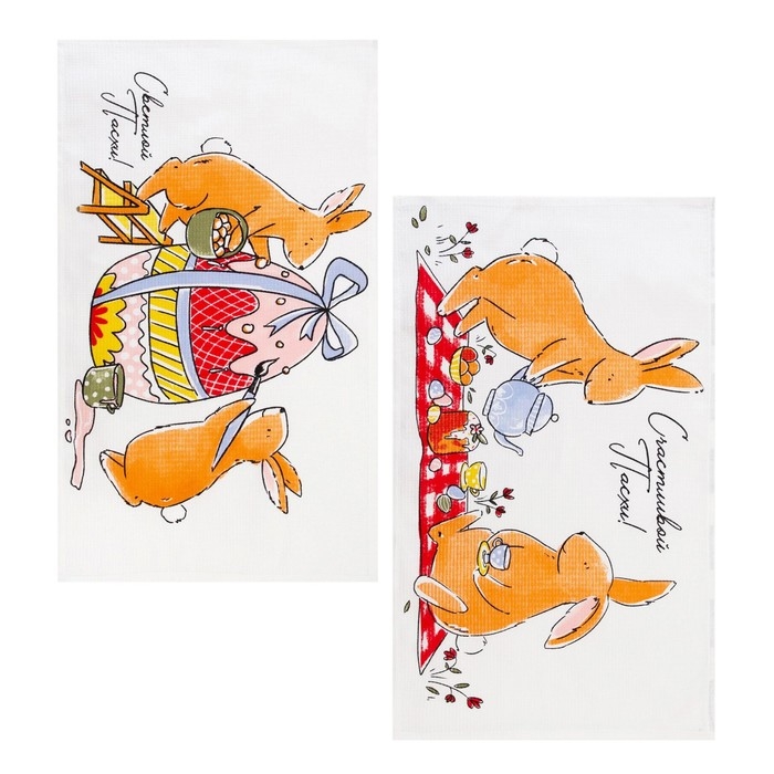Набор кухонных полотенец Доляна «Пасхальные зайчики», 35х60см-2 шт, 100% хл, вафля 160 г/м2