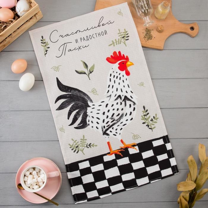 Полотенце Доляна «Счастливой и радостной Пасхи» 35х60 см, 100% хлопок, вафля 160 г/м2