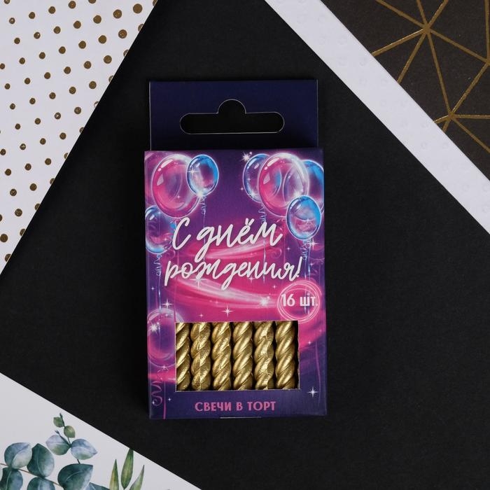Свечи для торта, золотые, 16 шт., 6,5 х 0,5 см