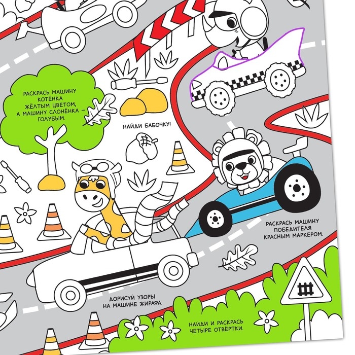 Многоразовая раскраска-плакат имеет глянцевое покрытие. С него без труда можно стереть маркер. Поэтому раскрашивать можно не один раз.