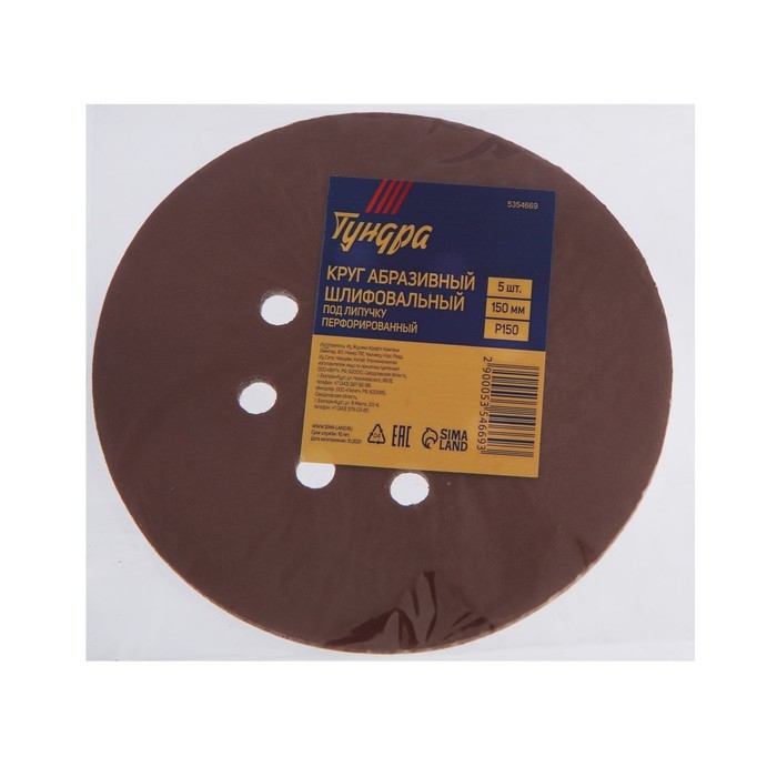 Круг абразивный шлифовальный под "липучку" ТУНДРА, перфорированный, 150 мм, Р150, 5 шт.