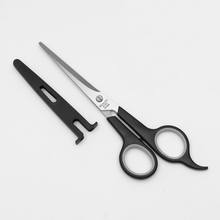 Ножницы парикмахерские с упором, лезвие — 6 см, цвет чёрный/серебристый