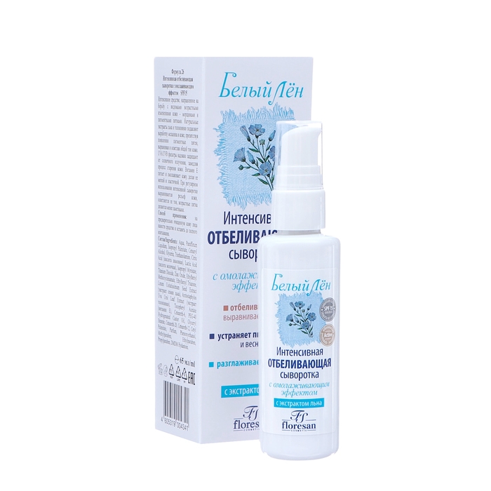 Интенсивная отбеливающая сыворотка "Белый Лен" с омолаживающим эффектом, SPF 15, 65 мл