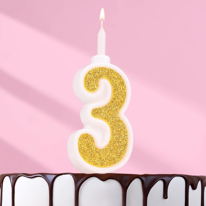 Свеча для торта "Суперблеск", 10,4 см, цифра "3", золотая блестка