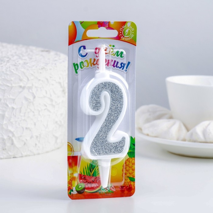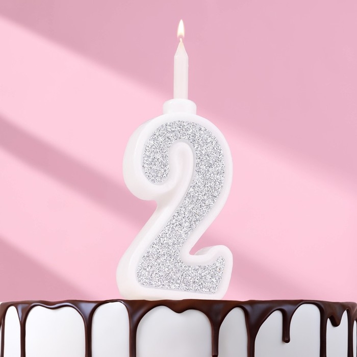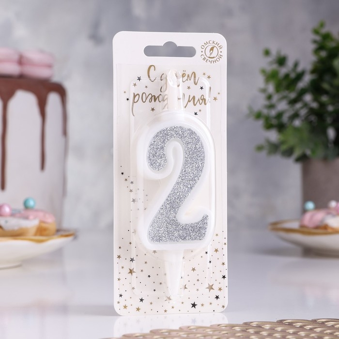 Свеча для торта "Суперблеск", 10,4 см, цифра "2", серебряная блестка