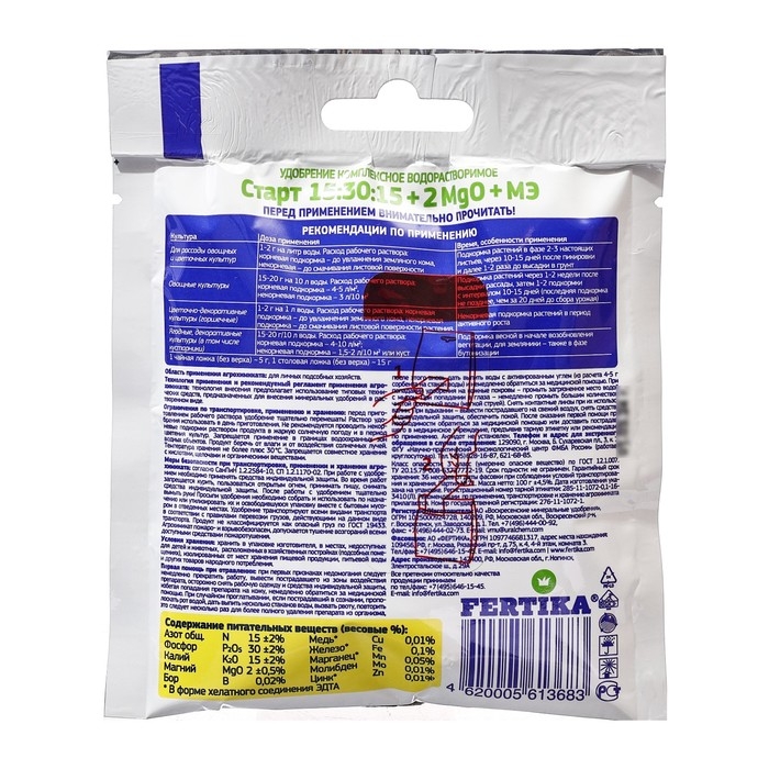 Стартовое водорастворимое удобрение для начальных стадий роста и развития растений.