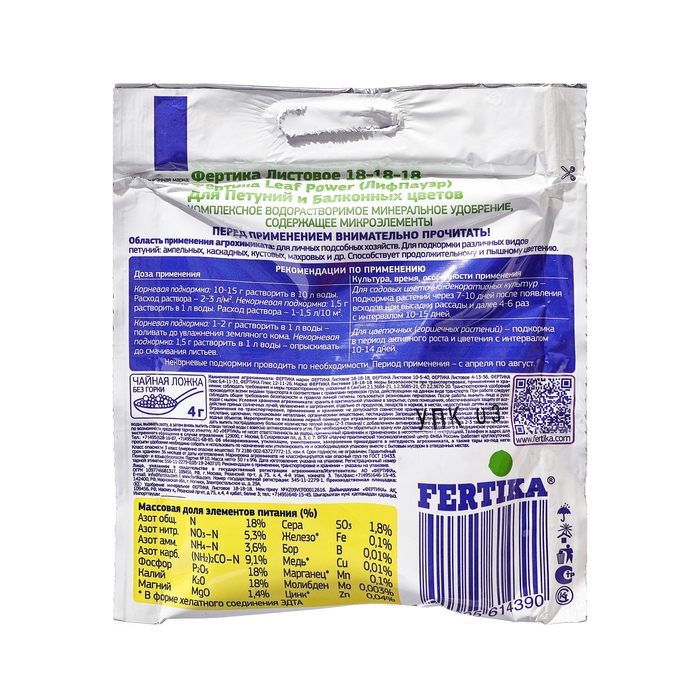 Удобрение минеральное "Фертика", "Leaf Power", для петуний и балконных цветов, 50 г