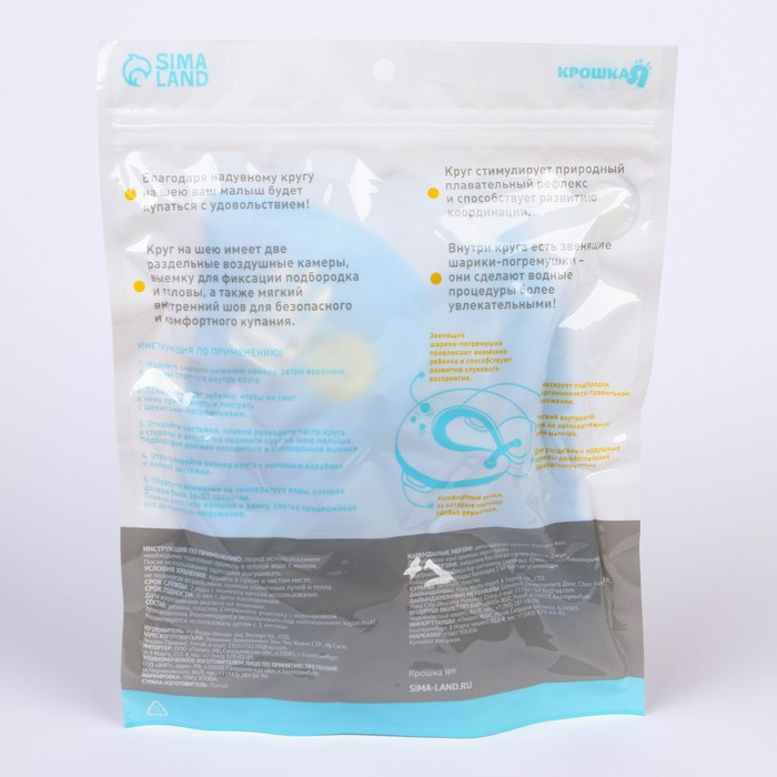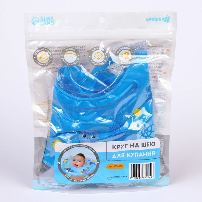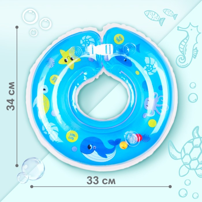 Круг для плавания новорожденных на шею «Море», надувной, с ручками, цвет голубой, Крошка Я