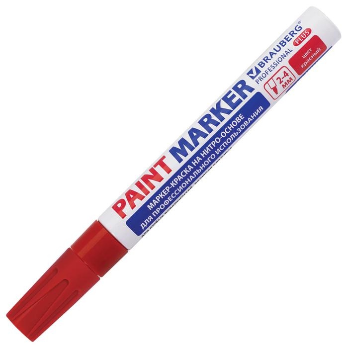 Маркер-краска (лаковый) 4.0 мм BRAUBERG PROFESSIONAL PLUS, красный, нитро-основа, алюминиевый корпус