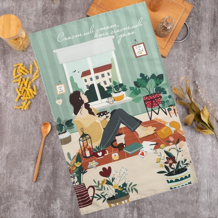Полотенце "Этель" Счастье быть дома 40х73 см, 100% хлопок, саржа 190 гр/м2