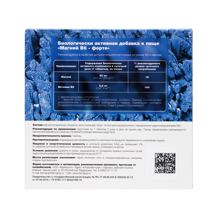 Витамин В6 участвует во многих метаболических процессах, в регуляции метаболизма нервной системы. Витамина В6 улучшает всасывание магния из желудочно-кишечного тракта и его проникновение в клетки.