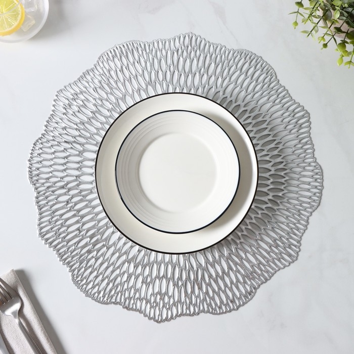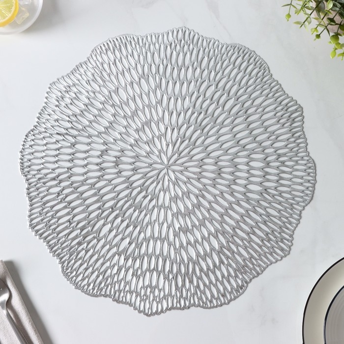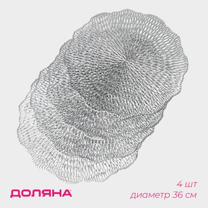Салфетки сервировочные на стол Доляна «Мэри», d=36 см, 4 шт, цвет серебряный