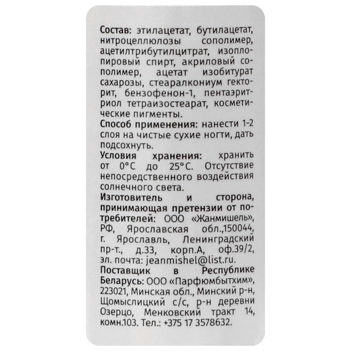 Лак для ногтей Jeanmishel, тон 100, 6 мл