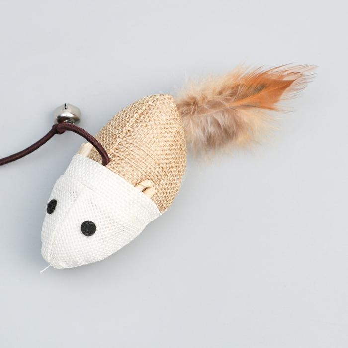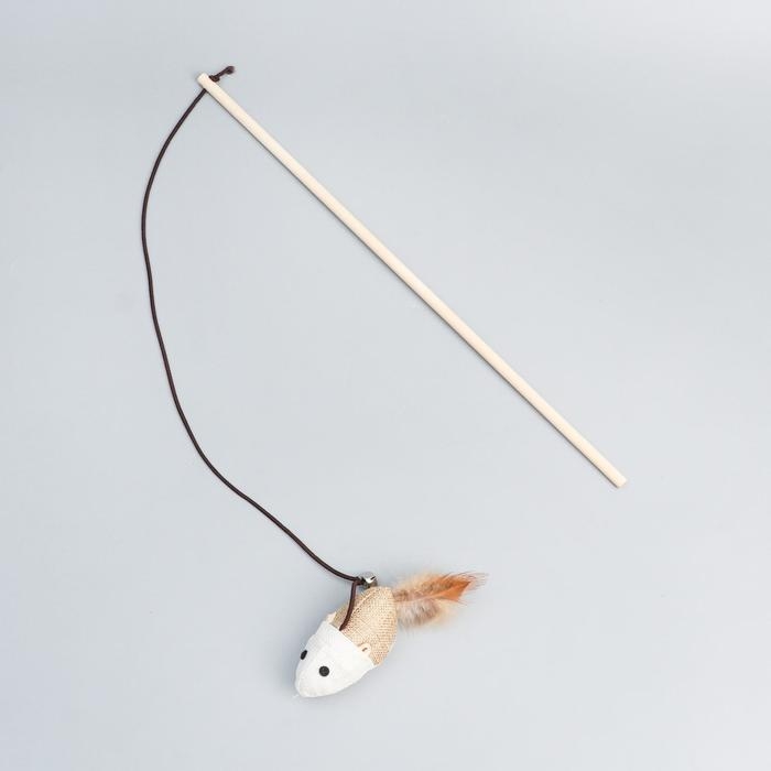Дразнилка-удочка из эко-материалов "Мышка", 40 см
