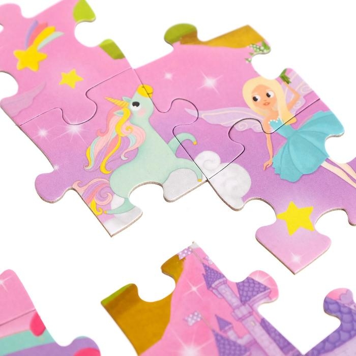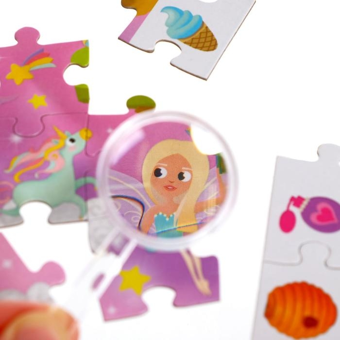 Пазлы «Найди и покажи: Сказочный город единорогов» — это занимательная развивающая игра в новом формате. С помощью лупы малышка будет искать разные милые предметы и сказочных животных, тем самым потренирует внимательность и воображение.