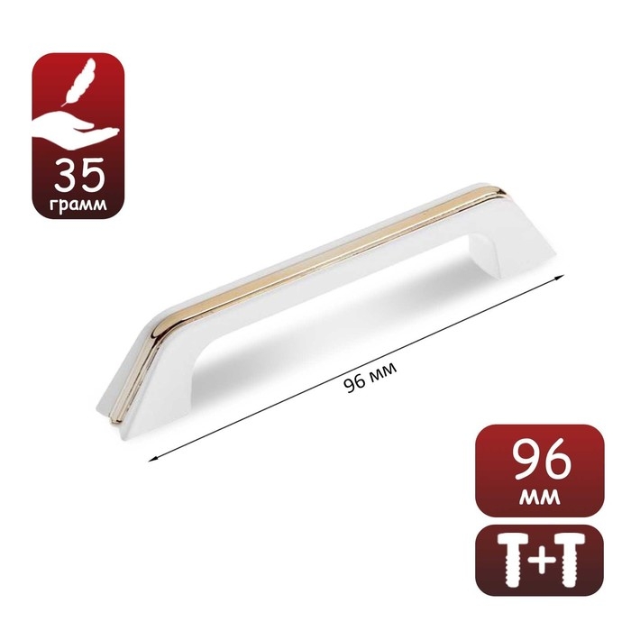 Ручка-скоба, м/о 96 мм, цвет белый, с золотой вставкой