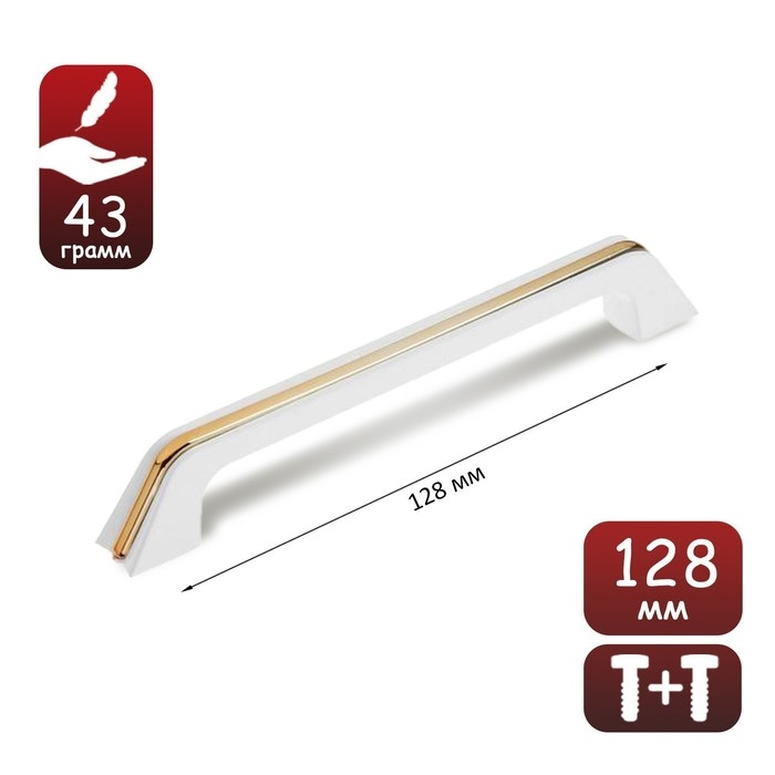 Ручка-скоба, м/о 128 мм, цвет белый, с золотой вставкой
