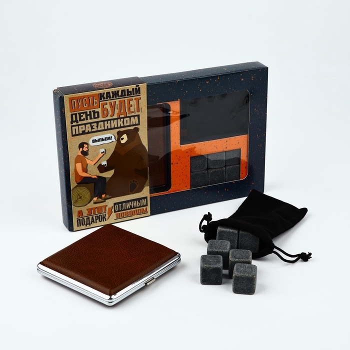 Подарочный набор «Праздник каждый день»: камни для виски, портсигар