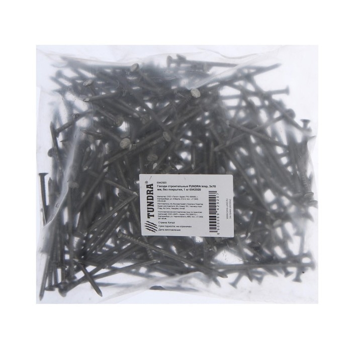 Гвозди ТУНДРА, строительные, ГОСТ 4028-63, без покрытия, 3х70 мм, фасовка 1 кг