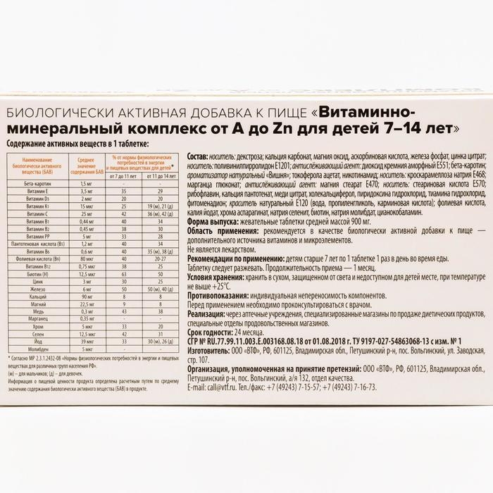 Витаминно минеральный комплекс Здравсити от A до Zn для детей, 30 таблеток по 900 мг