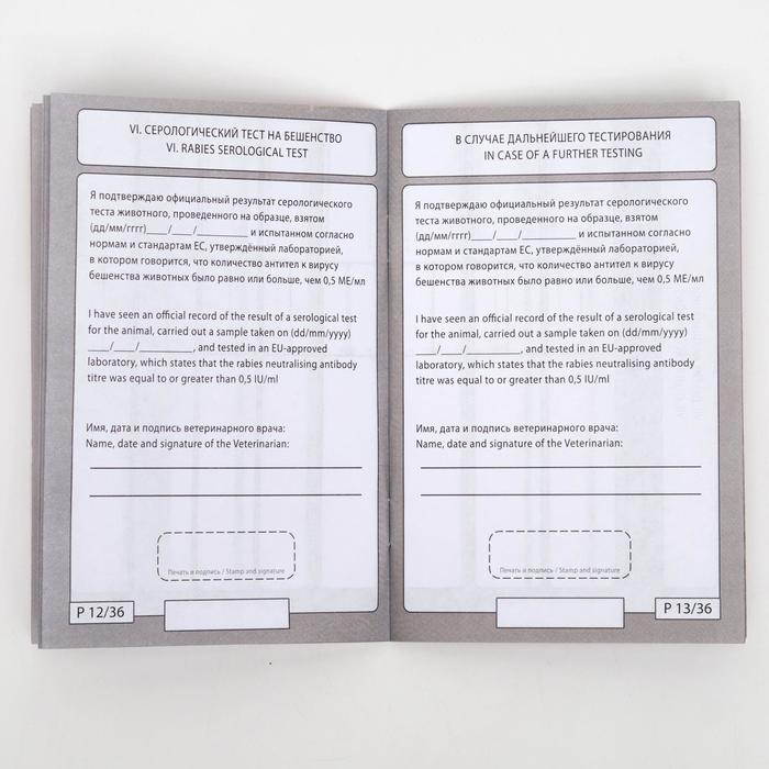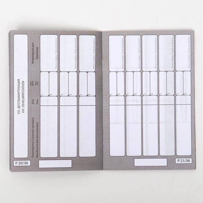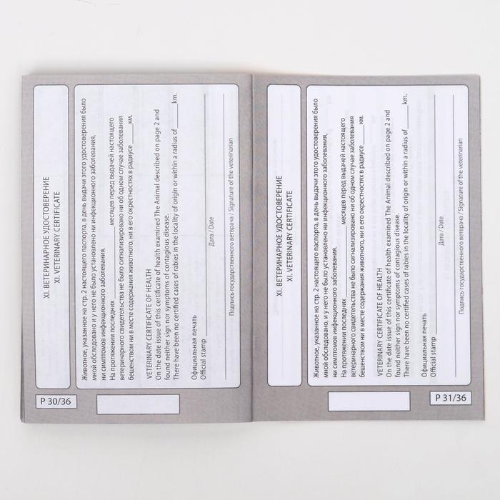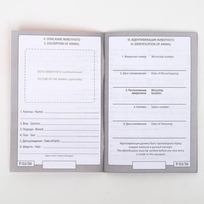 В этот документ включены данные о проведенных вакцинациях, чипировании, наличии прививок и информации о заболеваниях. Крепкая обложка из прочной бумаги обеспечивает продолжительный срок службы паспорта.