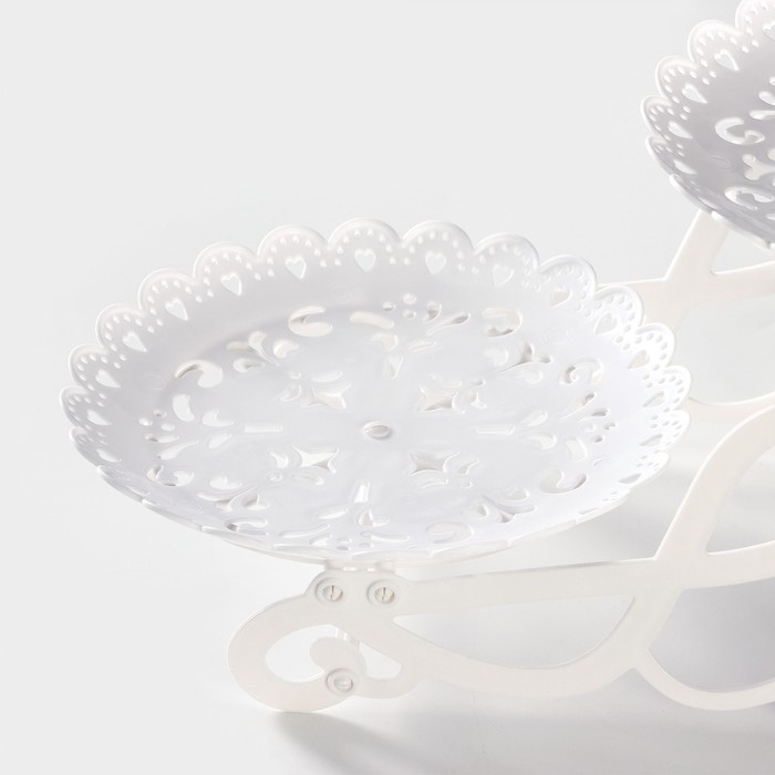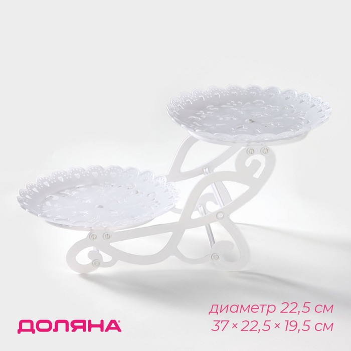 Блюдо для торта и пирожных 2-х ярусное Доляна «Кружево», d=22,5 см, 37×22,5×19,5 см, цвет белый