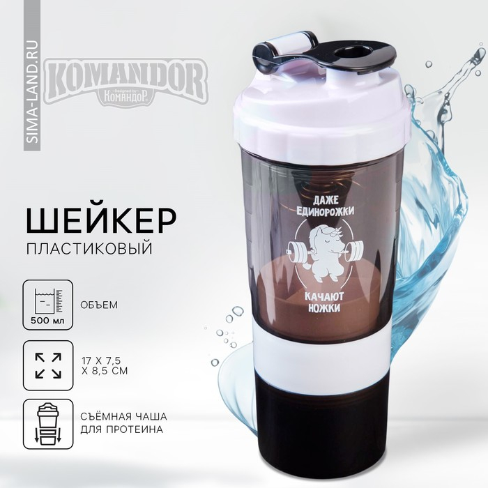Шейкер с чашей под протеин «Даже единорожки качают ножки», 500 мл