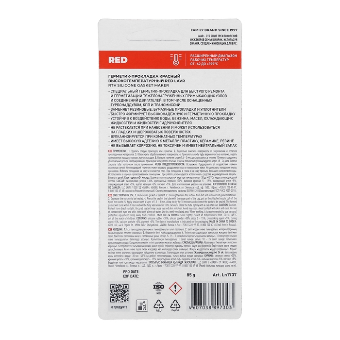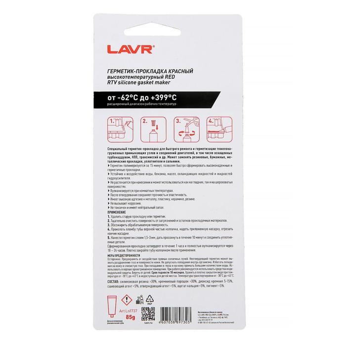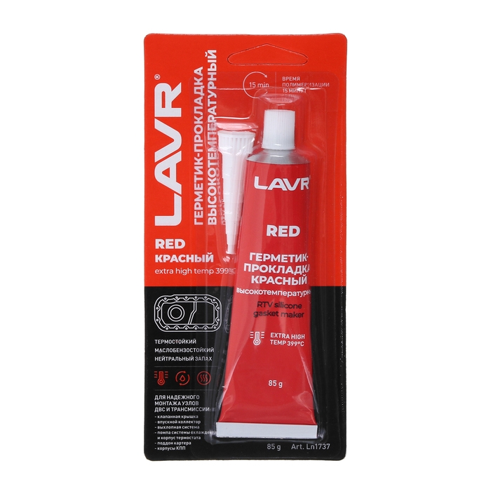 Герметик-прокладка LAVR RED RTV, красный, высокотемпературный, силиконовый, 85 г, Ln1737