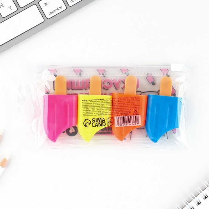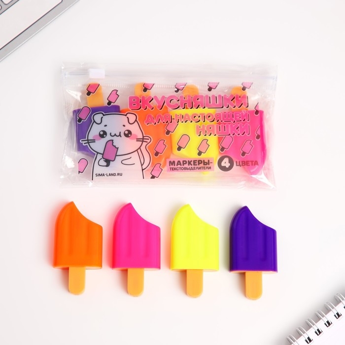 Набор текстовыделителей «Вкусняшки для настоящей няшки», МИКС 4 штуки.