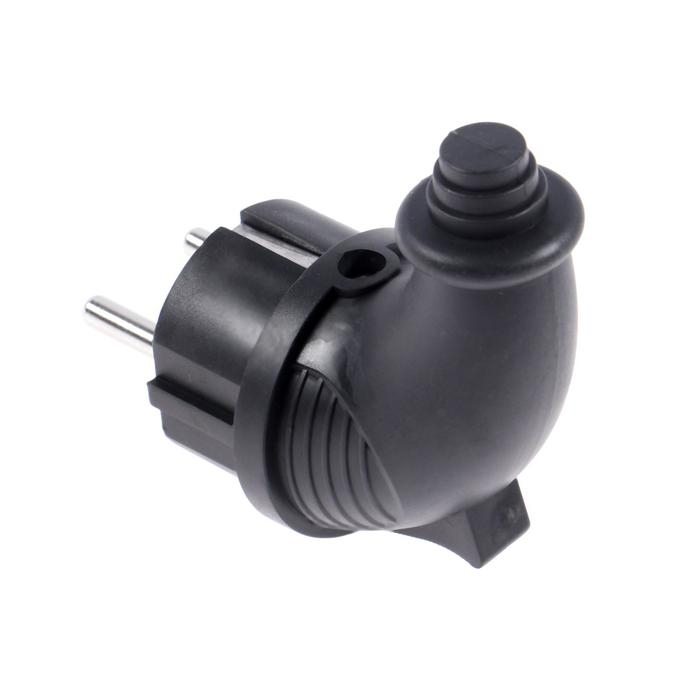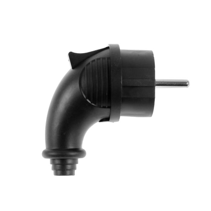 Вилка угловая, 16 A, 220 В, IP44, с з/к, каучук, черная